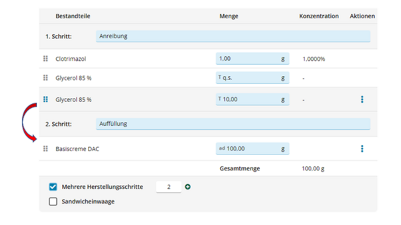 Unterteilung Ihrer Rezeptur in mehrere Herstellungsschritte