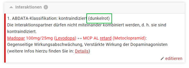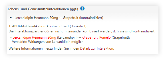 Die Check-Ergebnisse wurden im Bereich der Kontraindikationen und Interaktionen um eine verbesserte Kennzeichnung des ABDATA-Farbschemas und eines MediCheck-Hinweises ergänzt.