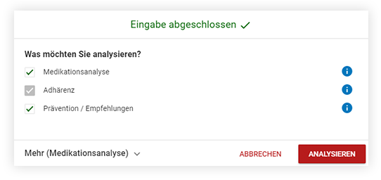 Als Standardeinstellung sind im Analyse-Panel alle drei pharmazeutischen Dienstleistungen angewählt.