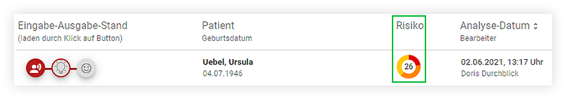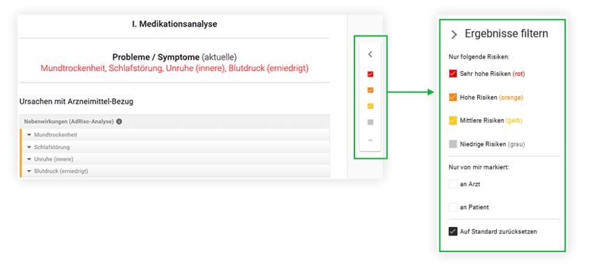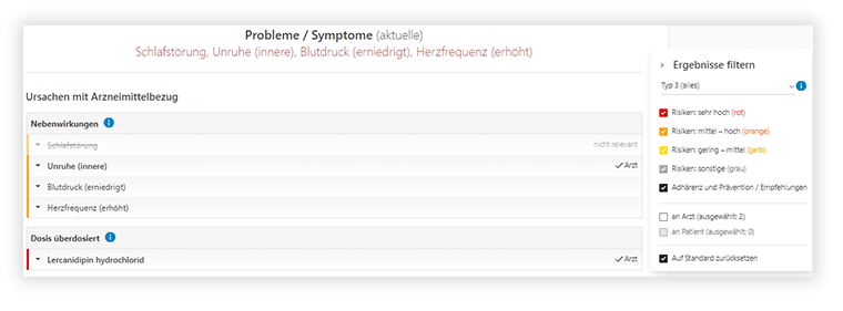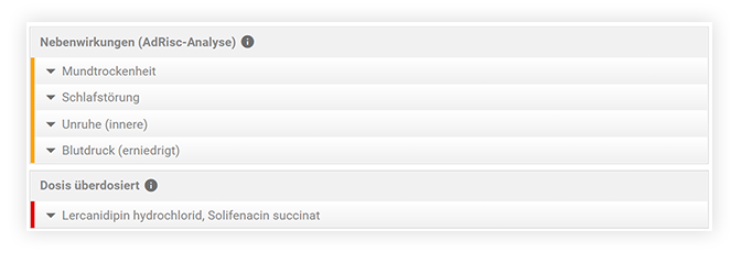 Anzeige aller Risikostufen im Arzneimittel-Risiko-Score im Analyseergebnis (rot-orange-gelb-grau)