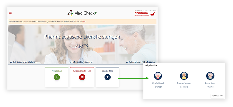 Der MediCheck bietet alles, was Sie für die Etablierung dieser Leistungen brauchen: Die webbasierte Software zur Medikationsberatung bei Polymedikation inkl. aktueller Arbeitshilfen der ABDA.