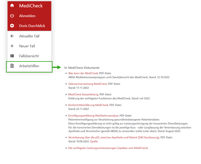 Aktualisierung der MediCheck-Dokumente im Bereich der Arbeitshilfen