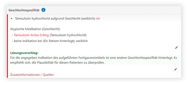 Dieser neue Check gibt an, welche Arzneimittel mit einer abweichenden, geschlechtsspezifischen Indikation in der Medikation vorliegen.
