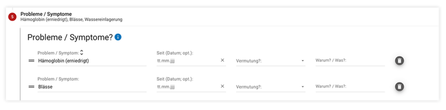 Kennzeichnung der Schritte 4 „Labor- / Vitalwerte” und 5 “Erkrankungen” als optional