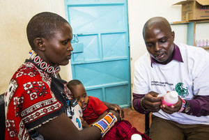 Nalorwesha redet ihrer Tochter gut zu, so dass sie schließlich die Medizin schluckt. Dann erklärt der Clinical Officer der Mutter, dass er ihr einen Salbutamol-Saft mitgibt, ein Medikament, das die Bronchien öffnet, damit die Kleine besser Luft bekommt. „Ein halber Teelöffel, alle acht Stunden!“ schärft er Nalorwesha ein.